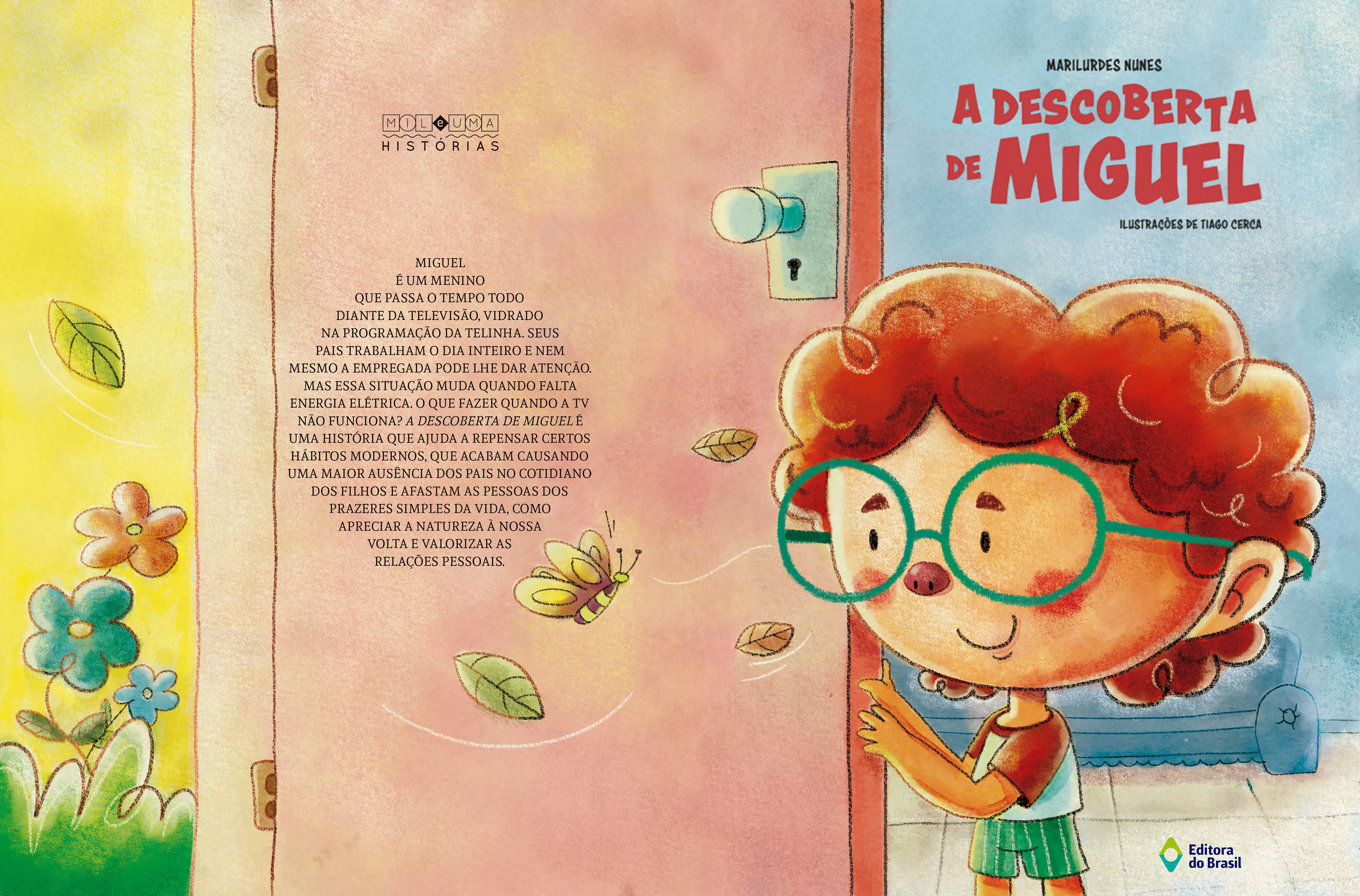 Este livro, que tive o prazer de ilustrar pela Editora do Brasil, fala sobre a Descoberta de um mundo em que Miguel havia esquecido que existia. Um mundo repleto de cores e de encanto que o mundo frio das telas não lhe oferecia.